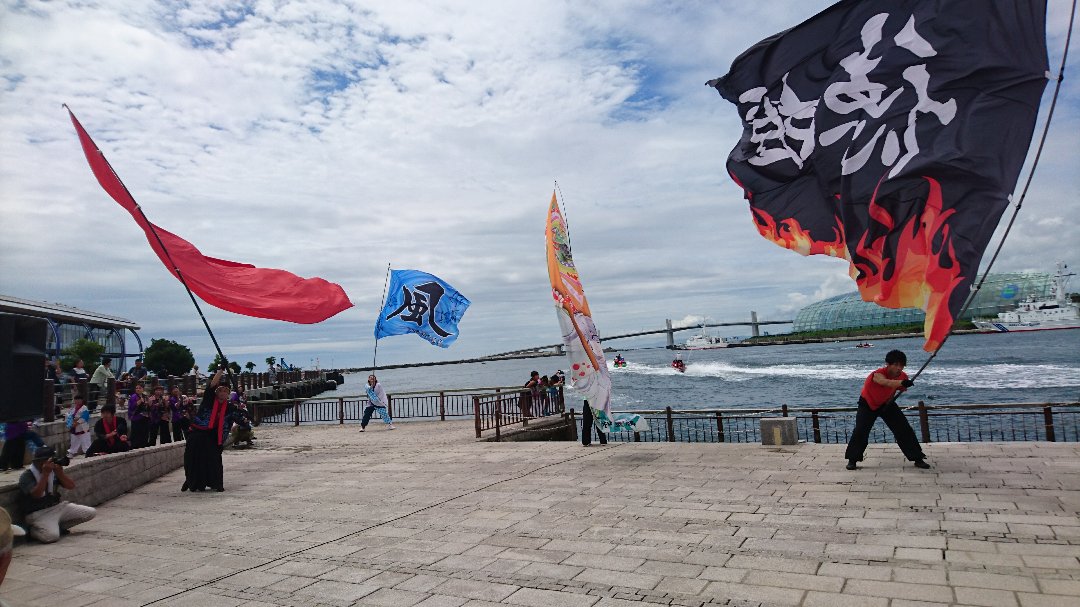 午前の旗演舞。