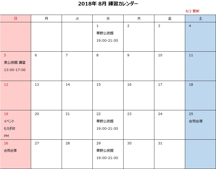 取り急ぎ、8月になってしまいましたが、8月度の予定を掲載します☆