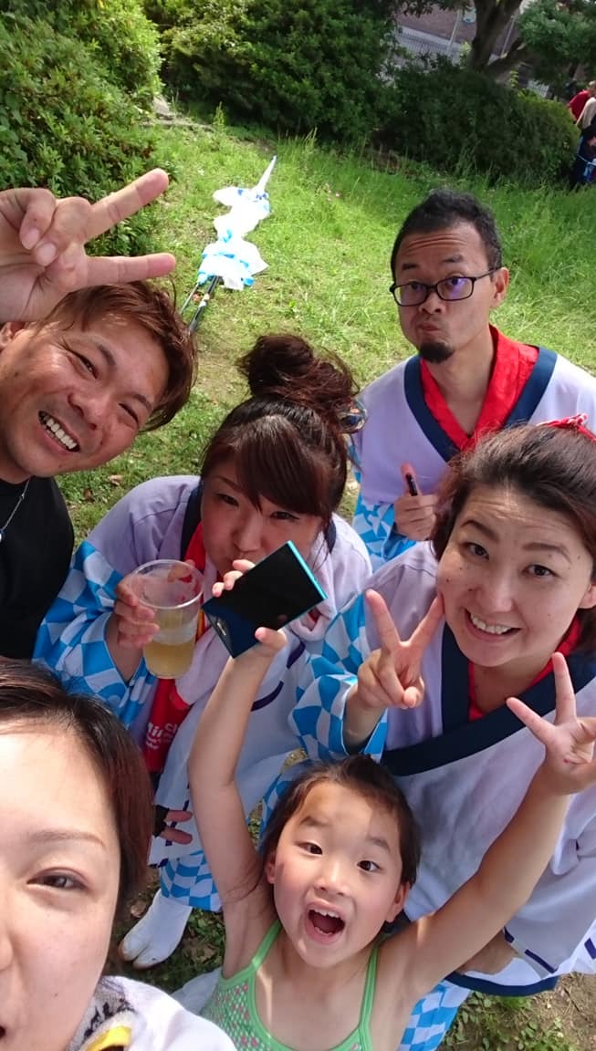 暑さに負けないよう、演舞前に気合を入れました。すごく久々の合図。