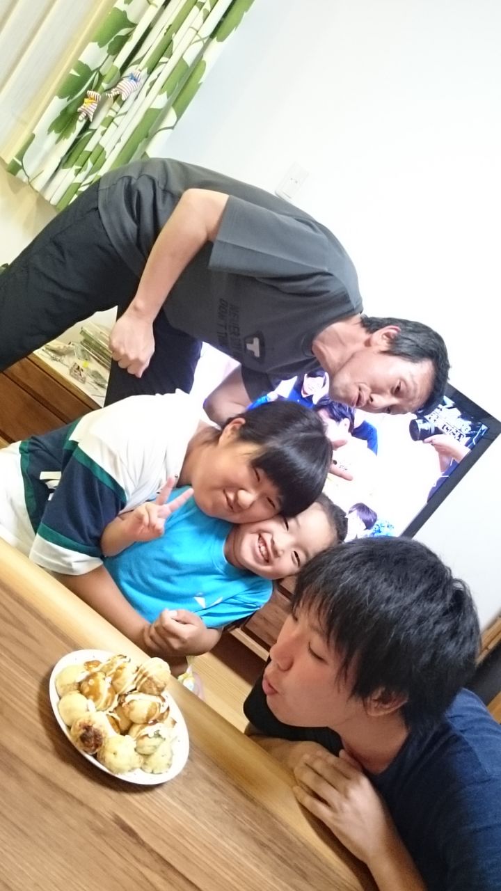 7月が誕生日の関係者も4名おり、急遽たこ焼きケーキ(ただ積んだだけ)登場。