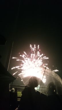雨の中撮影できたのは以下の雰囲気。花火としては間近で環境も最高!
